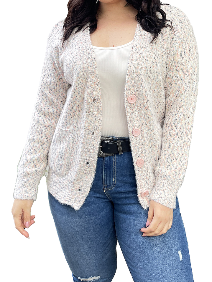 Cárdigan Botones jaspeado softy colores