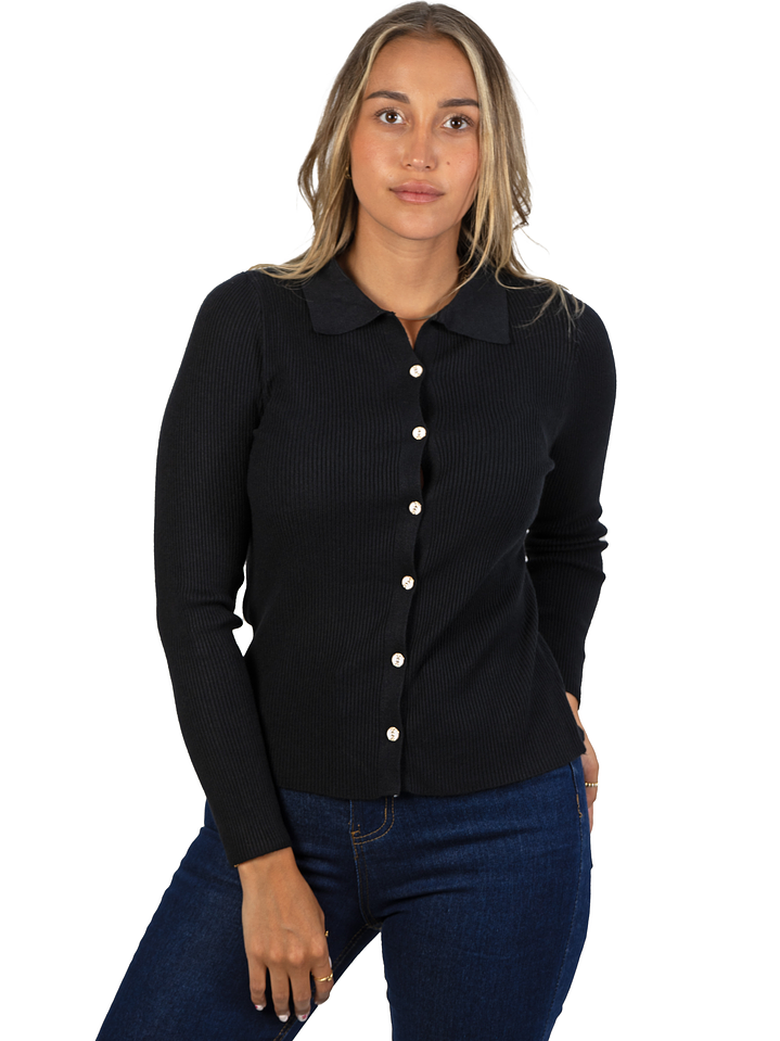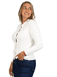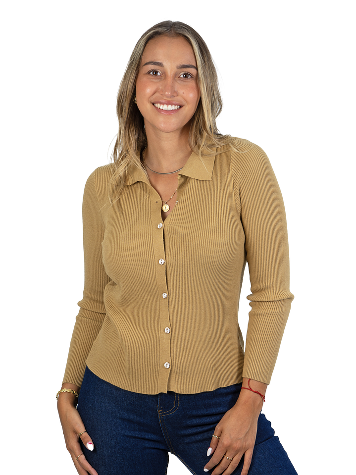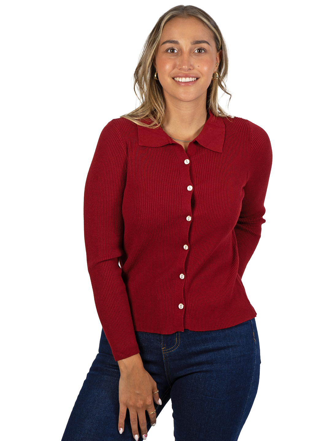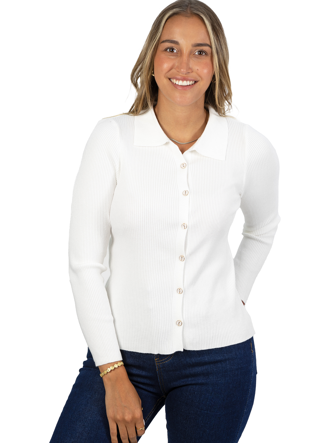 Lindo suéter de material spandex, con tejid acanalado en vertical y abotonado, de corte clásico. Ideal para llevar sobre una polera en la media temporada o como prenda interior. Disponible en una variedad de colores, te permitirá combinarlo fácilmente con tu atuendo favorito. Con su delicado detalle en el cuello tipo arrow, también puedes usarlo como capa principal abierto o cerrado, adaptándose a tu estilo según prefieras