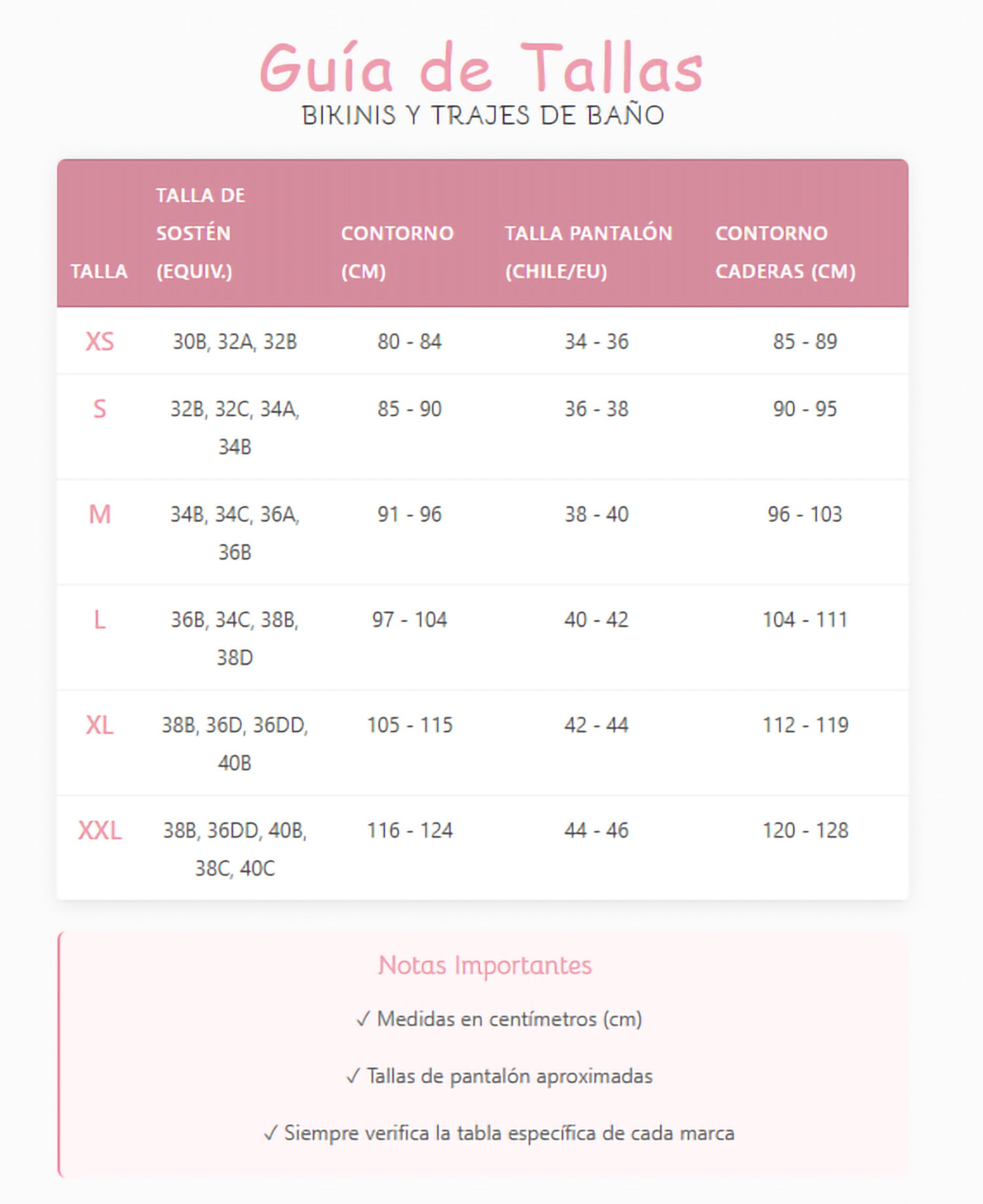 Tabla de tallas: